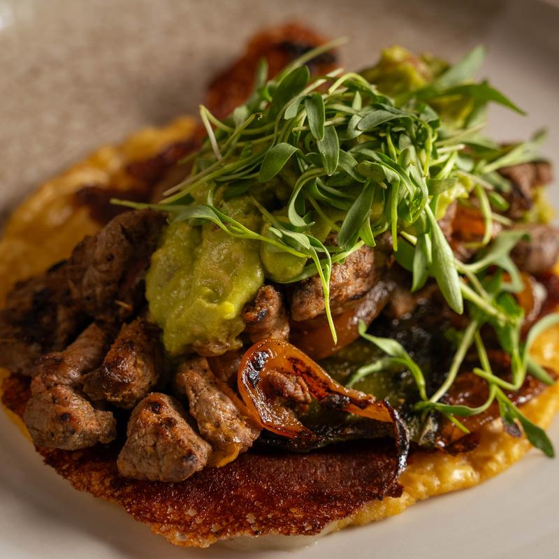 Ribeye, Roasted Poblano, Oaxacan Cheese, Caramelized Onions, Topped with Guacamole & Micro Cilantro.